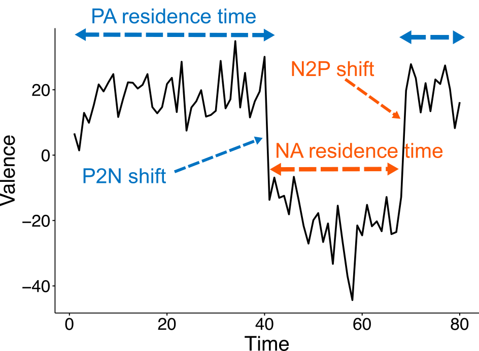 How we shift between positive and negative emotional states is closely linked to our psychological well-being. Understanding what drives these transitions can help develop tailored therapeutic interventions to improve mental health.